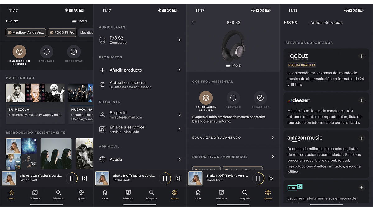 Luego hablamos de la autonomía y la aplicación, pero antes tratemos lo más importante de unos auriculares: ¿qué tal se escuchan? Bueno, pues por daros una respuesta rápida, los Px8 S2 se escuchan de maravilla.