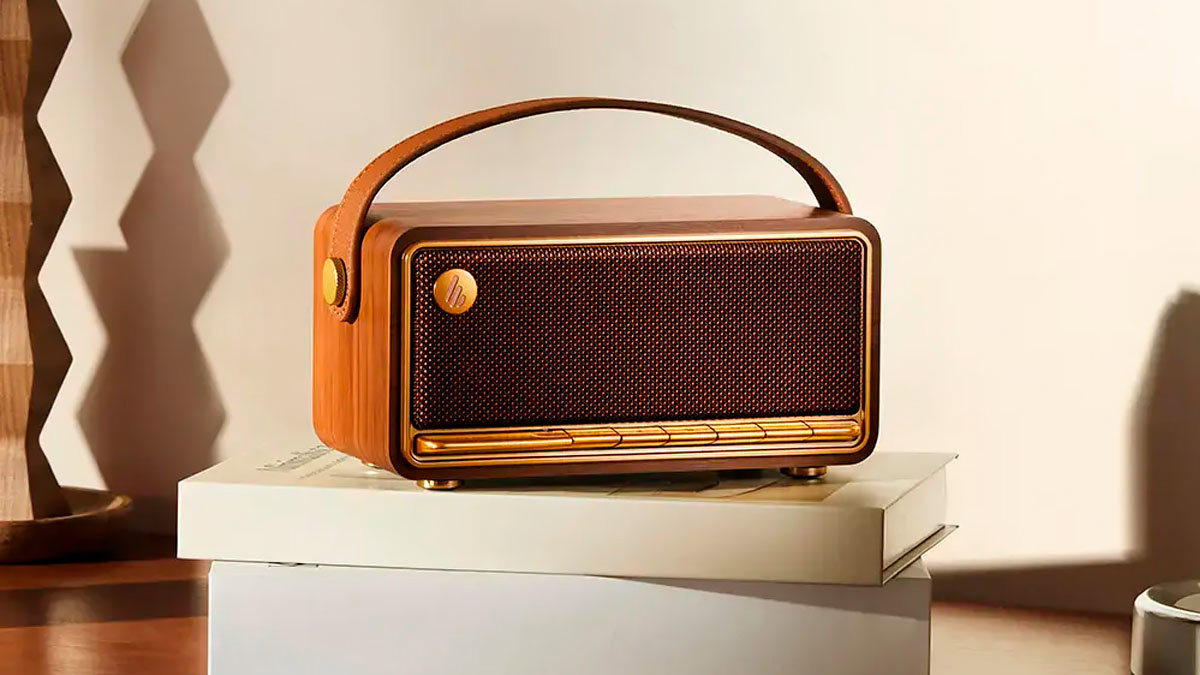 El diseño también merece una mención aparte. El uso de madera MDF aporta no solo una estética diferenciada, con cierto aire retro, sino también ventajas acústicas, ya que este material ayuda a reducir vibraciones no deseadas y mejora la calidad del sonido. A esto se añade un asa integrada que facilita el transporte, haciendo que el dispositivo sea cómodo de mover entre diferentes espacios, ya sea en casa, en la oficina o durante un viaje.