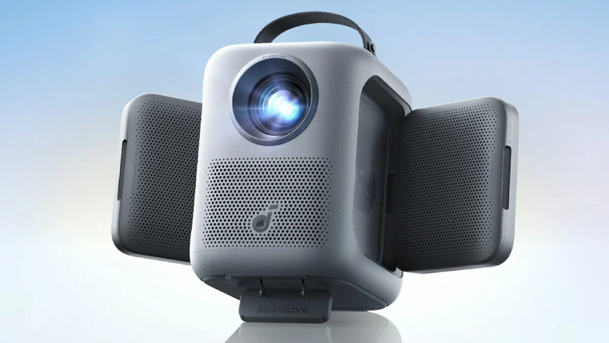 La buena noticia es que, una vez pasas la barrera del nombre, el producto se entiende bastante rápido. Estamos ante un proyector portátil Full HD, con Google TV integrado, varios ajustes automáticos para que no tengas que pelearte con la imagen y un detalle bastante curioso que es lo que más llama la atención del conjunto: unos altavoces abatibles con Dolby Audio que salen del cuerpo del proyector y le dan un punto distinto a lo habitual.