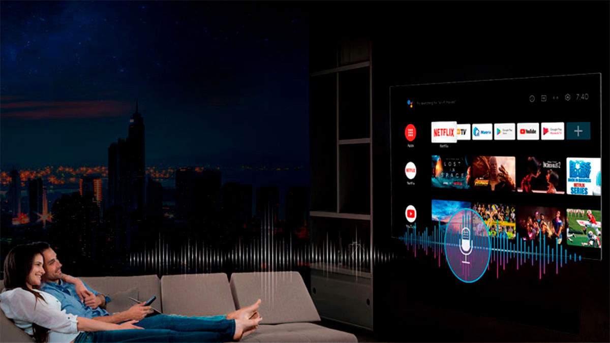 Y por otro lado porque nos permite controlar nuestro televisor de manera ágil y sencilla con el control por voz gracias a la integración de Google Assistant. Es decir, vamos a poder buscar en YouTube, Netflix o encontrar los últimos resultados de fútbol solo utilizando nuestra voz. Podremos así comunicarnos directamente con nuestro televisor y acceder a toda la información y entretenimiento de manera intuitiva.