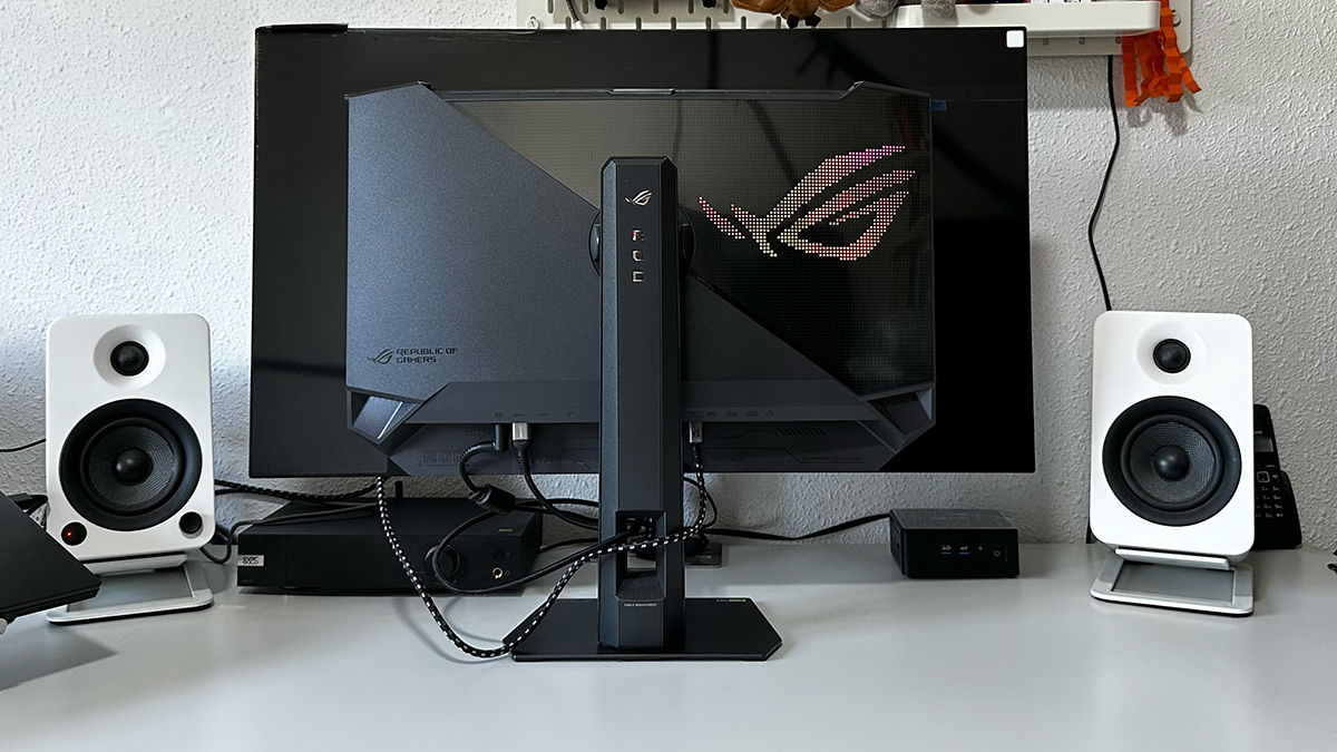 Entre sus puntos menos fuertes (porque no sería justo llamarlos débiles) tenemos el panel brillante que es un espejo cuando la sala está muy iluminada, que su rendimiento de color sigue estando por debajo de la tecnología QD-OLED (la diferencia es cada vez menor), que su puerto USB-C solo ofrece 15 W de potencia, que no tiene altavoces y, sobre todo ello, que su precio lo coloca en una posición complicada, ya que compite con varios monitores OLED de 240 Hz.