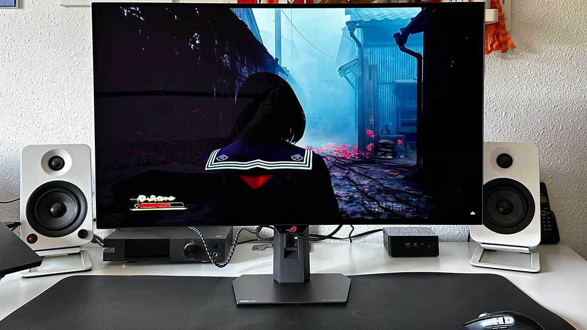 Por lo demás, el rendimiento del ASUS ROG Strix XG32UCWG es realmente alto, como ya suele ser costumbre en los monitores con esta tecnología. Los gráficos HDR se ven de escándalo, potenciados por el comentados aumento de brillo, la imagen es perfectamente nítida gracias a la resolución 4K UHD y a que esta tercera generación ya no tiene ningún problema de los que se detectaron con los primeros modelos.