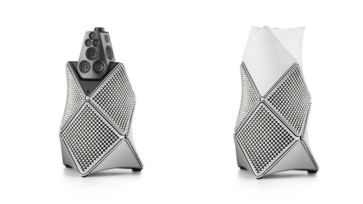 Todavía más espectacular si cabe es el nuevo Beolab 90 Zenith Edition. Inspiradas en la maestría de Atelier de Bang & Olufsen, miles de esferas de aluminio y sutiles incrustaciones de nácar transforman el emblemático altavoz en un objeto luminoso y con textura.
