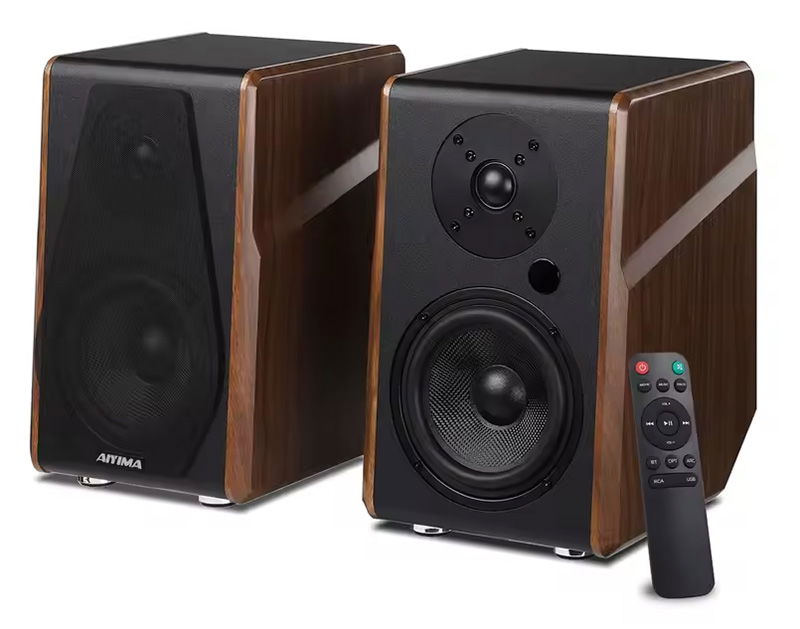 Los AIYIMA S600 son unos altavoces relativamente compactos que lucen un diseño que combina madera y blanco para un acabado bastante elegante. Están equipados con un woofer de 4 pulgadas y un tweeter de una pulgada, con un sistema de amplificación que ofrece una potencia nominal de 100 W.