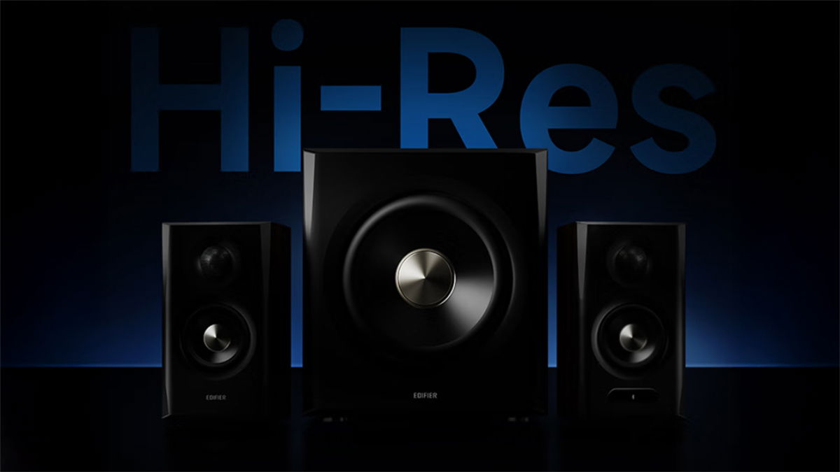 El subwoofer utiliza un altavoz de graves de 8 pulgadas de largo recorrido y se conecta de forma inalámbrica mediante un enlace de baja latencia de 5,8 GHz. Admite graves profundos hasta 44 Hz. Los dos altavoces satélite incluyen altavoces de medios con cono de aluminio de 3,5 pulgadas y tweeters de cúpula de titanio de 25 mm. Edifier ha diseñado los tweeters con una estructura de neodimio de doble imán para una mayor claridad en los agudos y una respuesta más rápida.