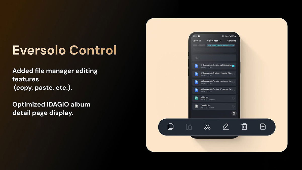 Se han mejorado aún más las características de la interfaz, la compatibilidad con idiomas y la corrección de errores. Los usuarios que utilizan almacenamiento interno verán mejorada la compatibilidad y la detección de SSD. Varias actualizaciones específicas de cada modelo completan el lanzamiento, incluyendo una opción de ganancia de phono para los modelos de la serie PLAY, una corrección de la pantalla para los usuarios del Eversolo DMP-A10 y herramientas básicas de gestión de archivos añadidas a la aplicación de control Eversolo.
