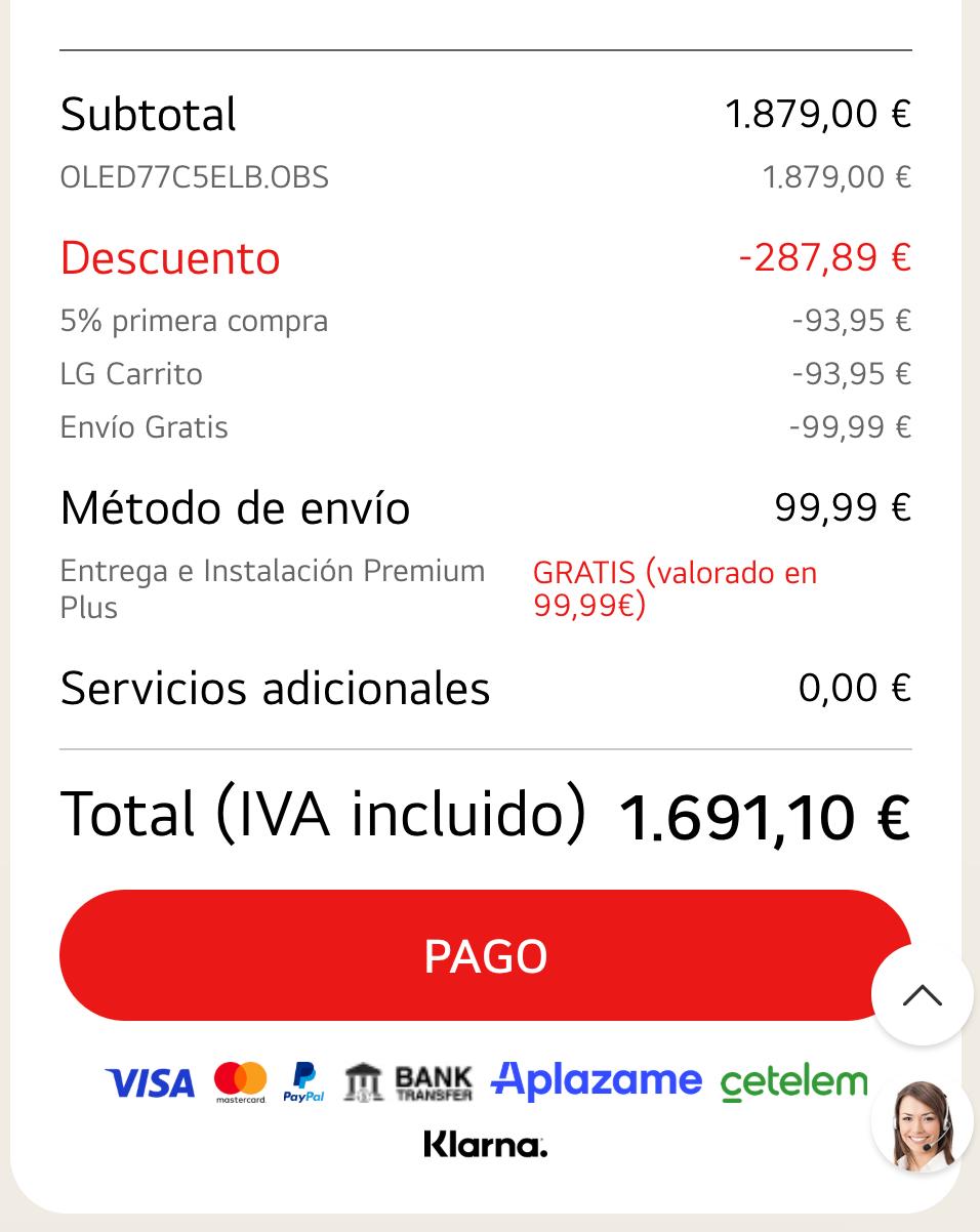 Perplejo estoy al ver que aún sigue bajando el precio de la LG OLED C5, con un chollo histórico al menos en las 77 pulgadas…y es que puede ser tuya por 1291 euros, un precio absolutamente bestial que no me cabe en la cabeza imaginar que podríamos ver en este Black Friday. Este precio supone, en ambos tamaños, conseguir el mejor precio histórico del año. I-N-C-R-E-I-B-L-E. En parte, este súper precio se debe al nuevo Cashback o reembolso doble que ha activado LG España (aquí os dejamos con las BASES directas para la tienda de LG online).