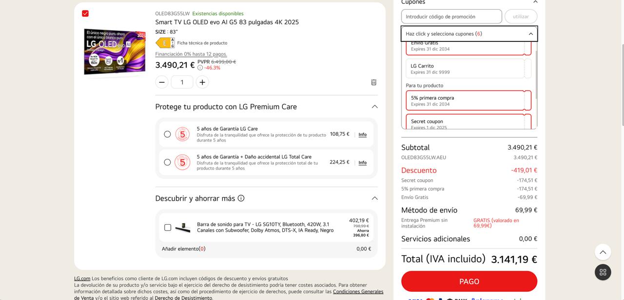 LG OLED G5 de 83 pulgadas: tutorial para comprarla por 2141 euros paso a paso