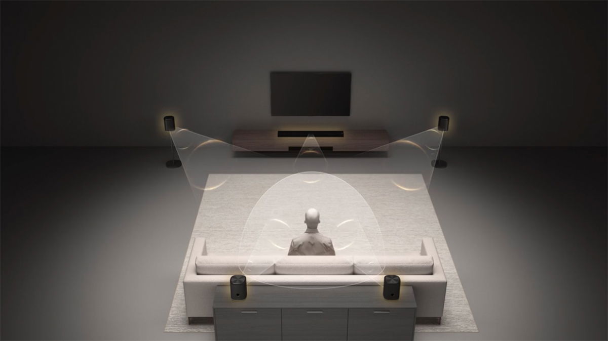 El Sound Suite es uno de los primeros sistemas que apuesta por la tecnología Dolby Atmos FlexConnect. Esta es capaz de detectar de forma inteligente la posición de cada altavoz, tanto si está colocado «en su sitio» como si lo hemos puesto en una zona de la sala que, en principio, no es la ideal. Una vez detectados, optimiza las señales de audio en tiempo real para ofrecer un sonido envolvente adaptado tanto al espacio como a la ubicación de los altavoces.