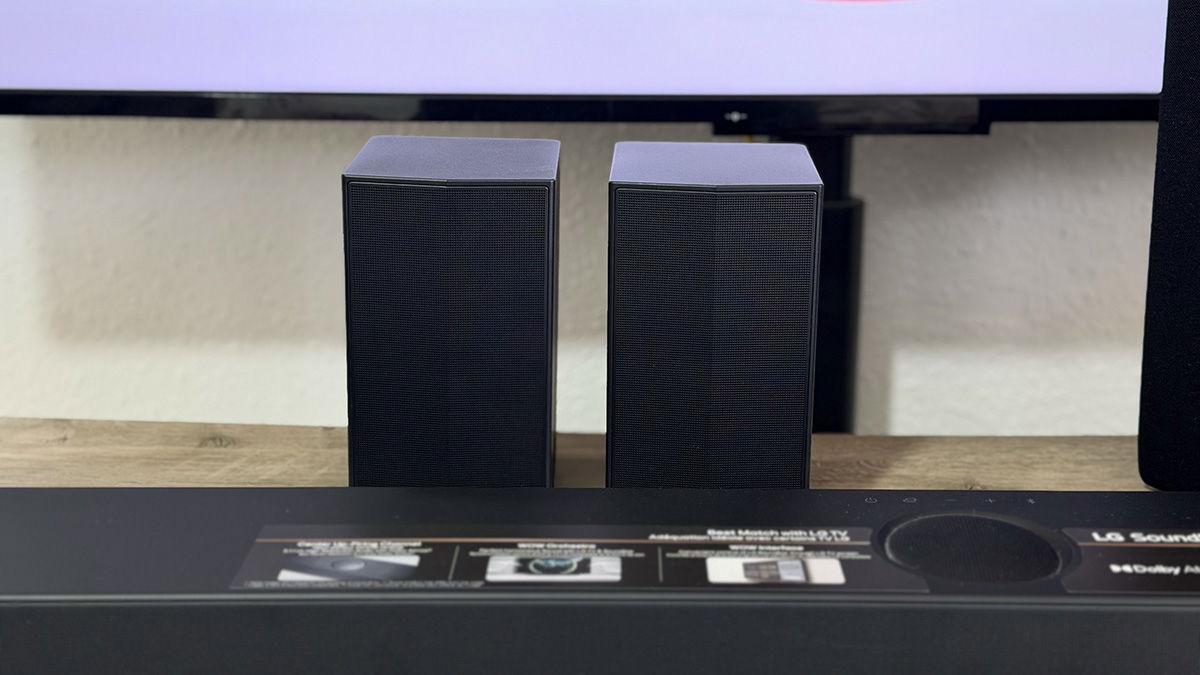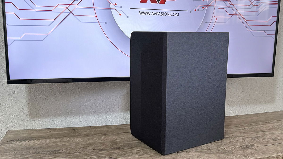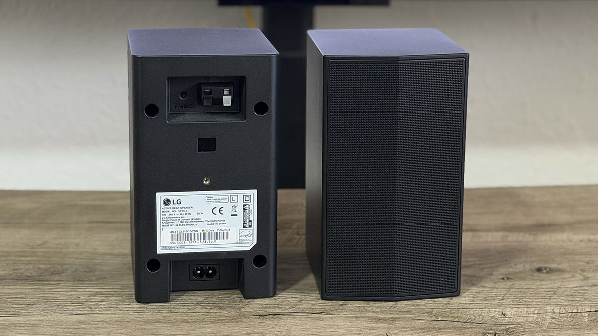 Y de nuevo, este sencillo diseño se lleva también a los altavoces traseros. Con unas dimensiones de solo 10 x 17.6 x 12 cm y un peso de poquito más de 1 kg por altavoz, los altavoces surround son dos pequeñas cajitas que vamos a poder colocar en prácticamente cualquier sitio, ya sea sobre un mueble o colgados en la pared.