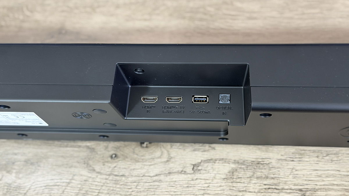 Ya en la parte trasera tenemos un hueco en el que encontramos los conectores. Más concretamente la LG S70TR cuenta con un HDMI de entrada, otro HDMI compatible con eARC (ambos conectores HDMI compatibles con 120 Hz y VRR/ALLM pass through), un puerto USB y una entrada Óptica. A nivel de conectividad inalámbrica tenemos Bluetooth, pero no WiFi, algo importante a la hora de controlarla a través de la aplicación de LG, ya que tendremos que sincronizarla cada vez que queramos usarla.