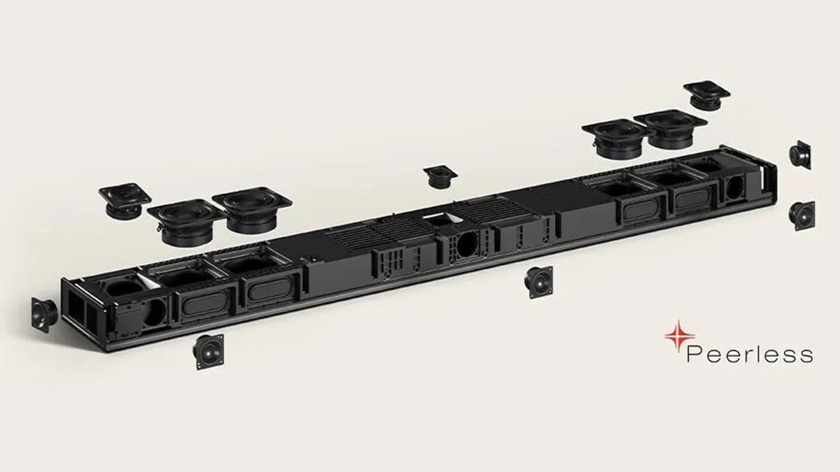 Pasemos a hablar de las características técnicas porque, como imaginaréis, tenemos mucho que contar. Para conseguir el mejor efecto Atmos necesitamos muchos altavoces, y desde luego el LG Sound Suite no peca de quedarse corto. Solo la barra de sonido LG H7 está equipada con 12 altavoces y 8 radiadores pasivos diseñados por Peerless, una empresa que lleva más de 100 años fabricando altavoces.