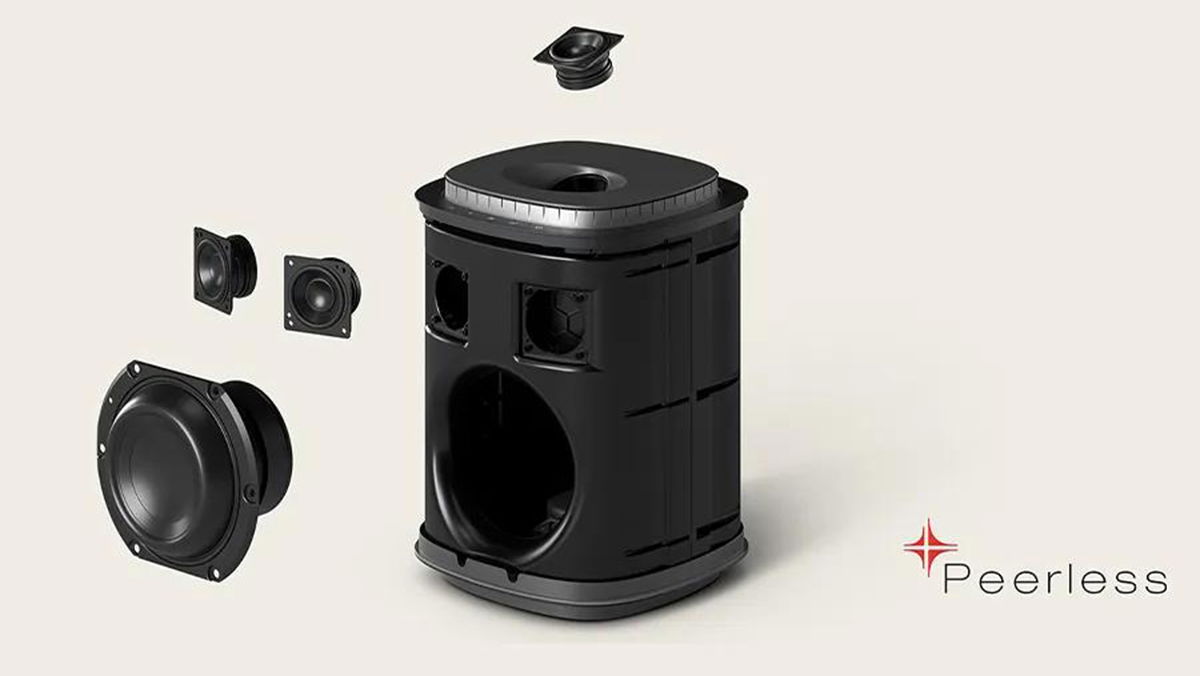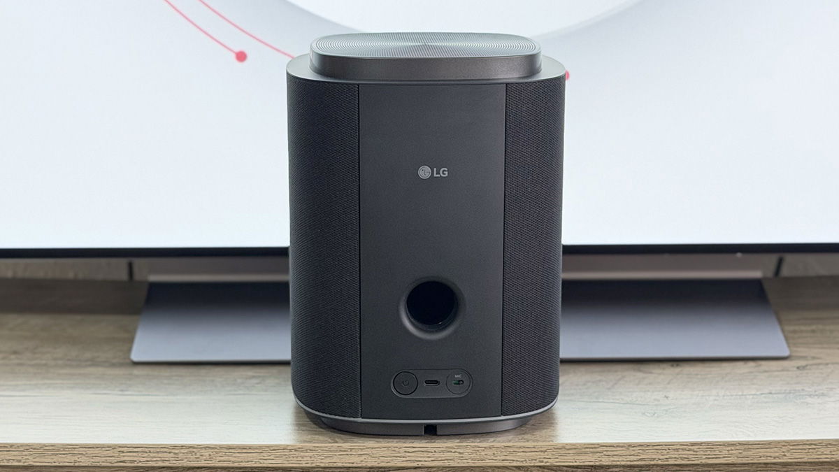 Aparcamos la barra de sonido a un lado para hablar del M7, el altavoz inalámbrico que podremos usar como altavoz surround en nuestro sistema LG Sound Suite. El M7 equipa tres altavoces de rango completo y un woofer, también diseñados por Peerless. Siendo un poco más específicos, tenemos tres drivers de rango completo de 38 mm (dos frontales y uno orientado hacia arriba) y el comentado woofer.