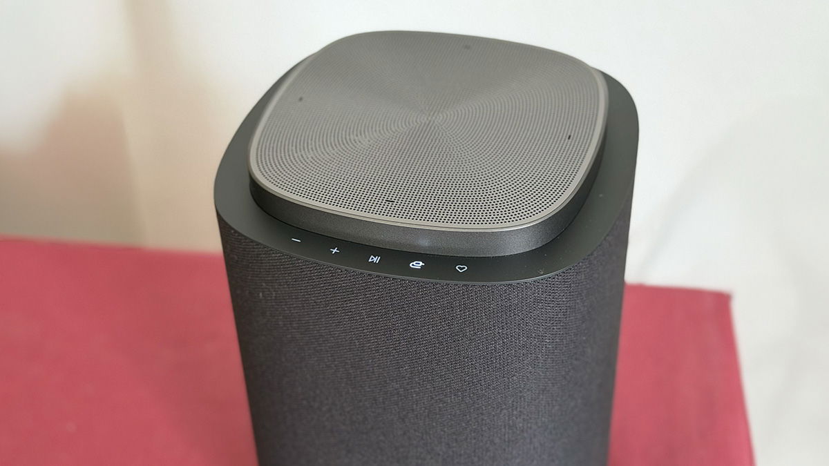 Un poco más llamativos son tantos los altavoces M7 como el subwoofer. Como decía, el LG Sound Suite se puede formar tanto con los M7 como con los M5. En nuestro caso hemos podido probar cuatro unidades del M7, el modelo más grande. Me ha parecido un altavoz súper atractivo, con un diseño muy acertado tanto para su uso junto con la H7 como para usarlo simplemente como altavoz inalámbrico.