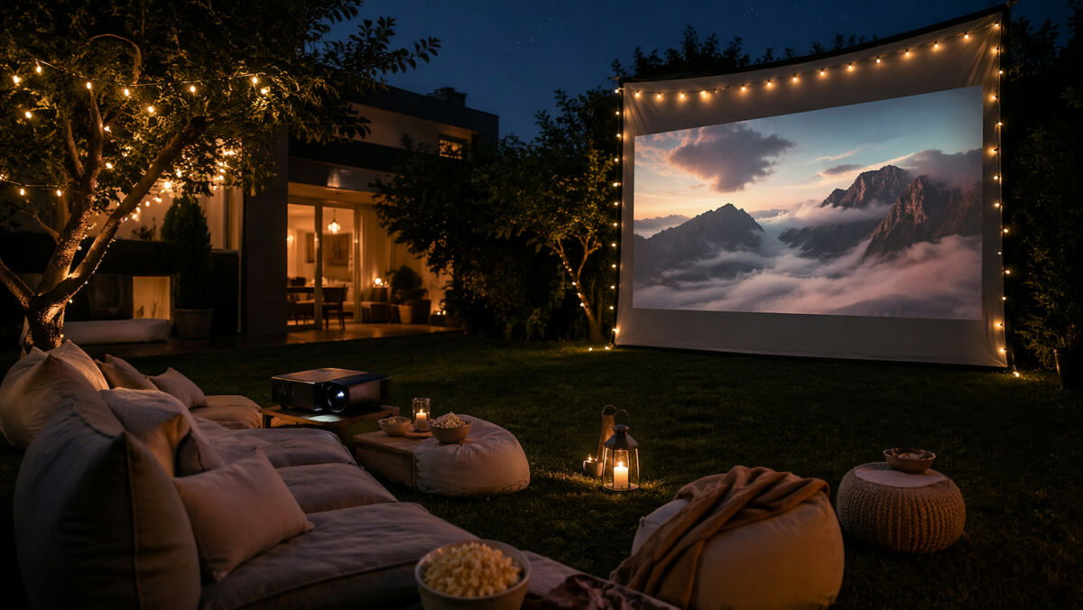 Montar un cine de verano con un proyector portátil puede salirte realmente bien, pero conviene no ir a lo loco. Una pantalla de proyección, quitar el modo Eco, llevar apoyo de batería y mejorar el sonido con un altavoz Bluetooth son cuatro detalles muy simples que marcan una diferencia enorme.
