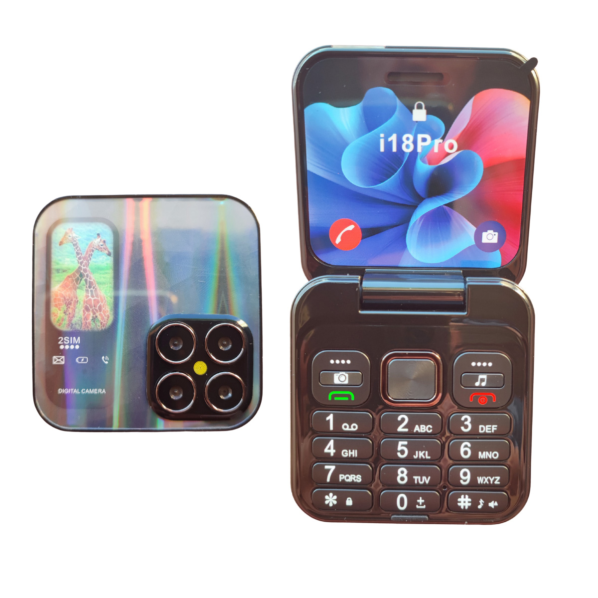 Este es un teléfono plegable diseñado para usuarios que buscan un dispositivo práctico y sencillo, ideal para tareas básicas como llamadas, mensajes y radio. Su pantalla HD de 2,4 pulgadas (320×240) facilita una visualización clara de menús y funciones, mientras que su diseño compacto y ligero, con dimensiones de 67 x 67 x 20,4 mm y un peso de 80 gramos, lo convierte en una opción cómoda y portátil.
