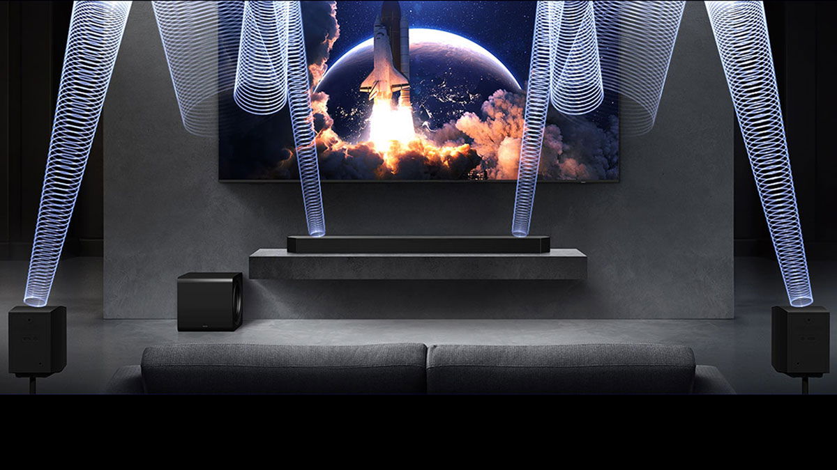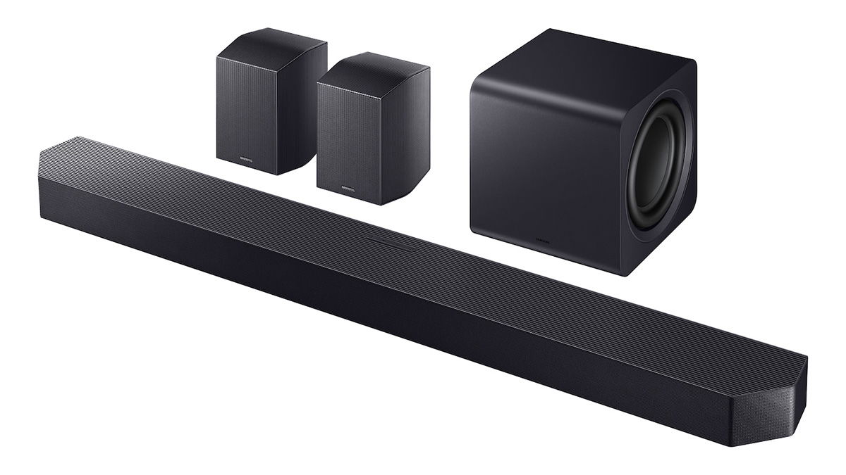 La llamamos barra de sonido, pero lo cierto es que la Samsung HW-Q990F es un completo sistema de sonido. Un sistema con 11.1.4 canales y una potencia total de 756 W, con novedades importantes respecto al modelo del año pasado: por ejemplo, la barra cuenta con un nuevo subwoofer de doble driver de 8 pulgadas con varias mejoras en su respuesta táctil y más bajada para unos graves más profundos.
