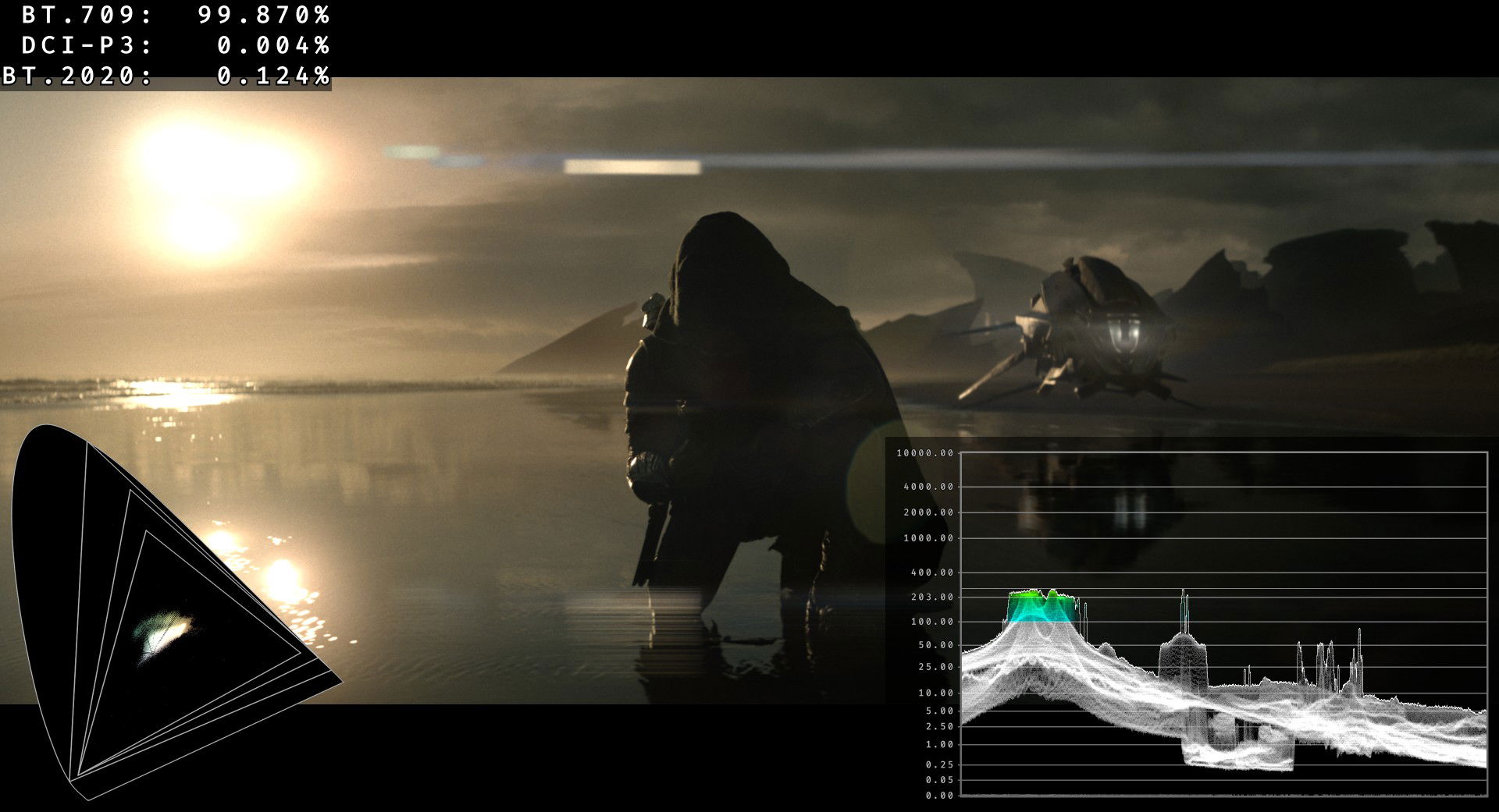 ¿Todas las explosiones? ¡no!. Hay un plano de unos pocos segundos de duración, hacia el final que es una gozada. Momento gafas de sol. Sé que destacar 1.000 nits en televisores con capacidades de más de 4.000 hoy en día es ridículo, pero es lo que hay señores y señoras. Destacamos 1.000 nits de un plano HDR, para lo que hemos quedado, que diría aquel. Os lo enseño un poco más abajo en el epígrafe del wide color gamut.