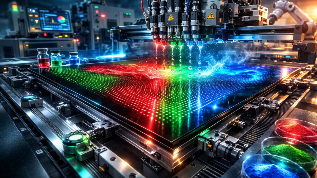 El proceso QDCF es, simplificando sin insultar a nadie, el momento en el que se deposita tinta con quantum dots sobre el sustrato para crear esa capa que convierte color. No es “pintar por pintar”. Es hacerlo pixel a pixel, con una precisión bestia, porque hablamos de paneles con cientos de millones de píxeles.
