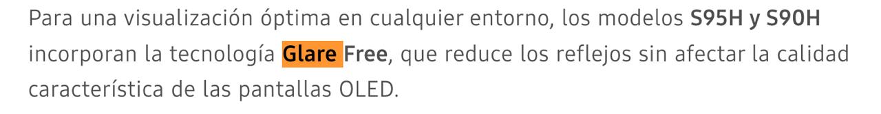Lo curioso del tema, es que ni en el IFA ni en el CES, hemos visto mención alguna a que esta función estuviera disponbile en modelos OLED que no fuera la tope de gama S95H o la «S95H con módulo One Connect que es la S99H», sin embargo en una nota de prensa oficial hemos visto como la marca anuncia que «los modelos S95H y S90H incorporan la tecnología Glare Free, que reduce los reflejos sin afectar la calidad característica de las pantallas OLED.». ¿Entonces…todas las OLED llevarán panel mate?