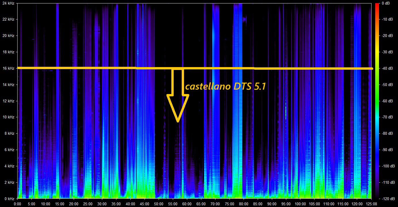 En la versión en castellano, el DTS 5.1 está limitado a 16 khz tal y como figura en la gráfica que ilustra este comentario.